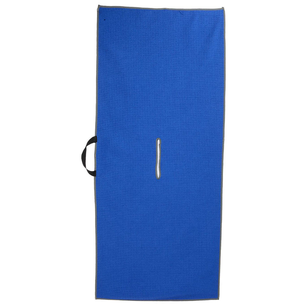 Add a custom logo to the Leed's Royal 17" x 40" RPET Slip-Over Players Towel with a waffle texture and soft hand feel. The highly absorbent towel is great for cleaning, and a large center slit easily fits over the clubs to save space. Perfect for cleaning before and after a shot or an entire round. Sell in a pro shop or specialty shop with ease.