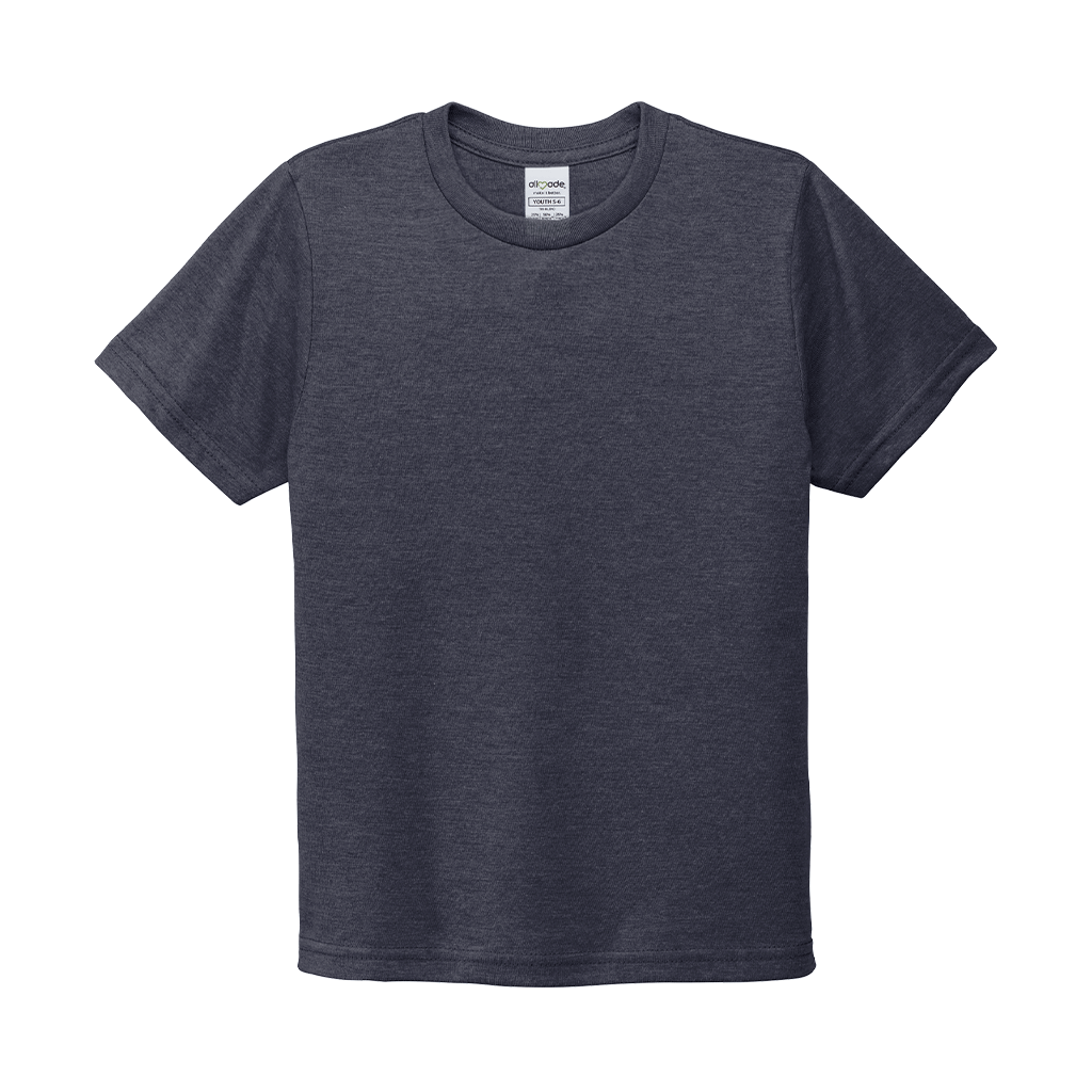 Design a screen print for the Allmade Youth Rebel Blue Tri-Blend Tee to create a unique look for your team or organization. The simple recycled apparel is not only great to wear, but good for the environment. Made of sustainable materials that are the equivalent to up to six recycled plastic water bottles. This super soft tee is perfect for youth as they play their hardest each day. Add a custom logo to add to your sustainable clothing line in shops or simply add to your own wardrobe.