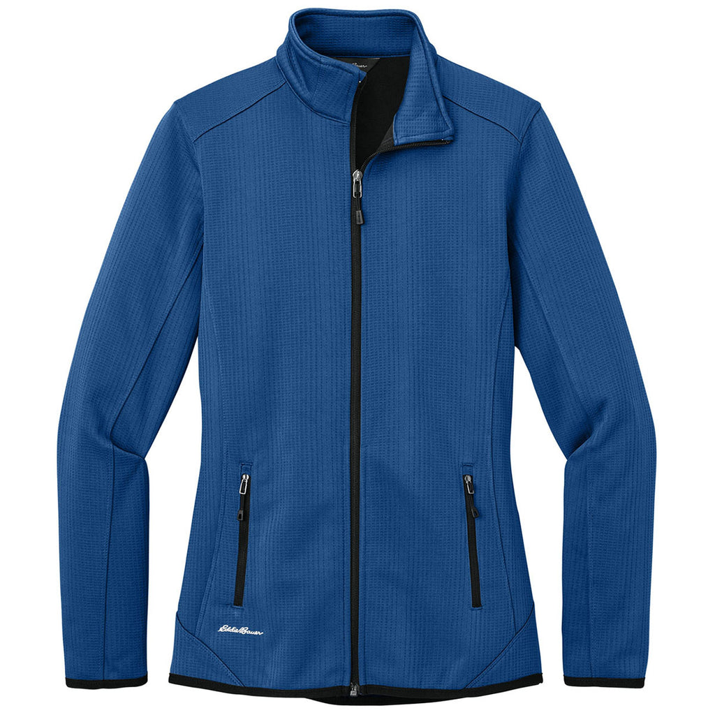 Corporate apparel has never looked more stylish when you order the embroidered Eddie Bauer Women's Cobalt Blue Dash Full-Zip Fleece Jacket for the team of high achieving employees. The dynamic appearance of the jacket will turn heads at sales conferences. Take advantage of the attention by making sure your employees display the company logo attached on the large imprint area. Reverse coil zippers effortlessly move up and down to create one of the easiest jackets on the market to put on and take off. Open cuffs allow you more room to move your arms and wrists for tackling home improvement projects.