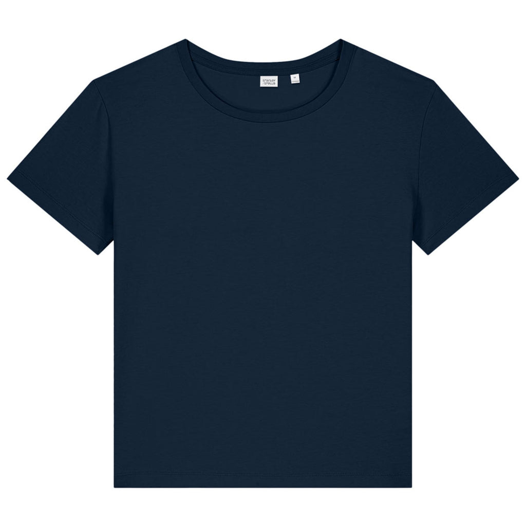 Stanley/Stella Women's French Navy Stella Serena Scoop Neck Tee with a custom print design combines a flattering scoop neckline with the softness of organic cotton. The relaxed fit makes it easy to wear for any occasion, whether at home or out with friends. This tee's eco-friendly material adds an extra layer of appeal, making it an easy choice for those who value sustainability.This product cannot ship outside of the United States.