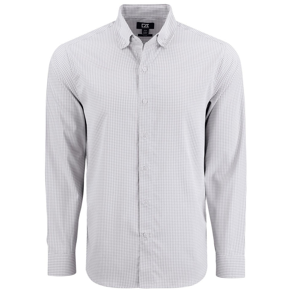 Cutter & Buck Men's Concrete/White Skyline Epic Confidence Recycled Gingham Long Sleeve Dress Shirt
