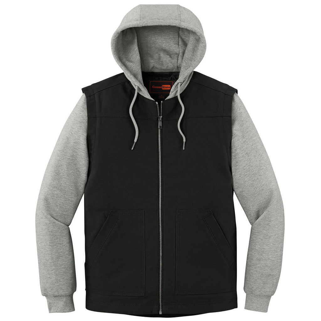 CornerStone Men's Black/Heather Grey Duck Fleece Full-Zip Hooded Jacket