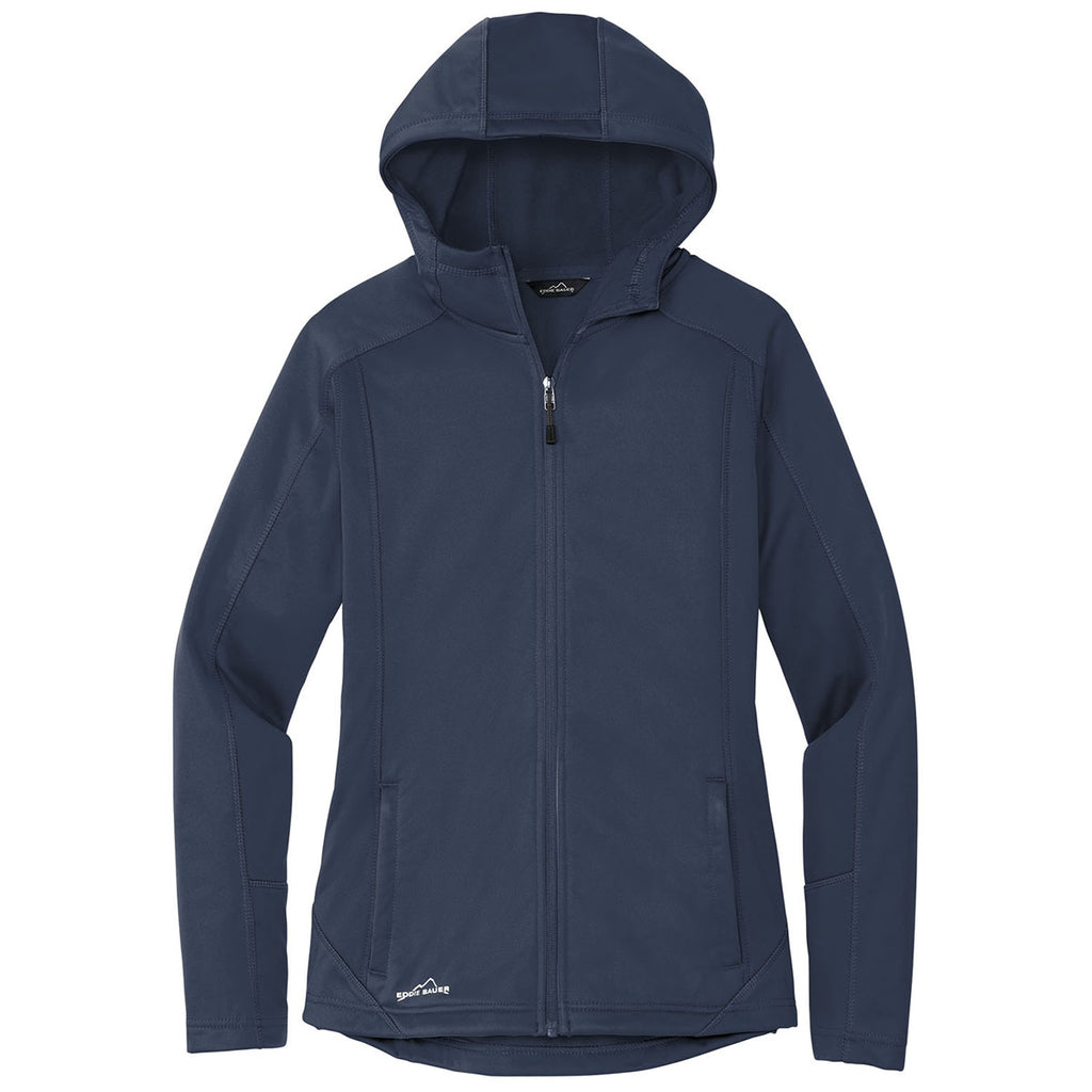 Give the logoed Eddie Bauer Women's River Blue Trail Soft Shell Jacket to each member of your successful team. The sleek embroidered corporate gift includes a large imprint area to attach your corporate logo. Designed with 100% rugged polyester knit shell and DWR coating, the jacket also receives a water-resistant laminated film to prevent Mother Nature from dampening your day. The micro fleece brushed interior feels smooth to keep you feeling fresh all-day long. Attach the hood to bundle up when the weather takes a turn for the worse. Your team will appreciate having a jacket that they actually want to wear both to the office and after hours.