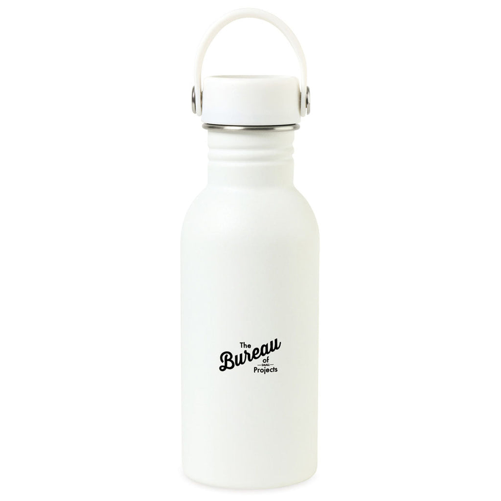 The Gemline White Arlo Classics Stainless Steel Hydration Bottle - 17 Oz. features a sleek, sophisticated design that will ensure your company's custom logo or design always gets noticed. Available in an array of attractive matte color options, this screw-top bottle is made from single wall stainless steel and easily fits in most car cup holders for advanced portability.
