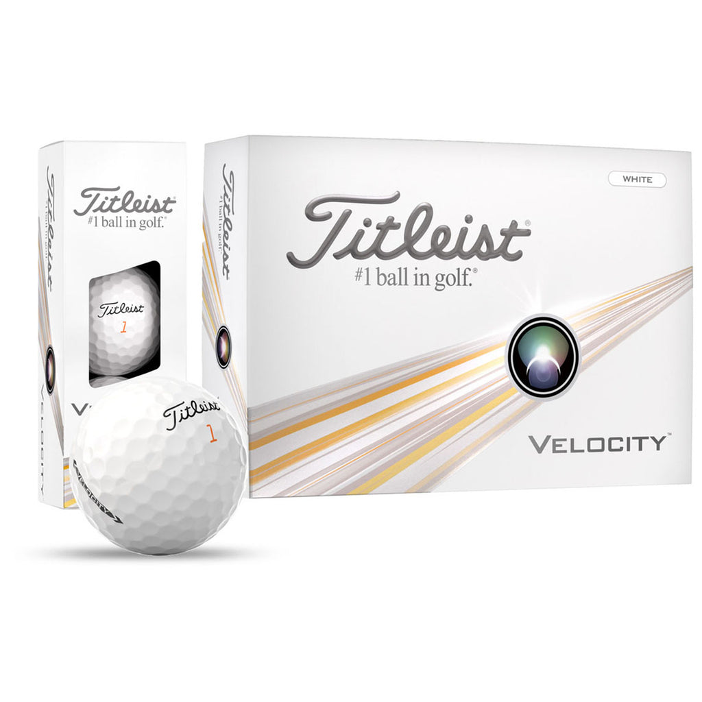 • The Titleist Velocity golf ball features a new aerodynamics package to optimize flight and a larger, faster core to maximize speed. It produces high flight on all shots to enhance distance and help stop the ball on the green.