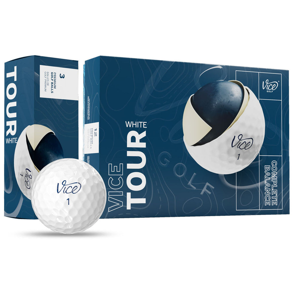 - The Vice TOUR ball is produces outstanding performance from tee to green. With the VICE TOUR ball you benefit from the technological improvements, including an updated hardness distribution, a higher coefficient of restitution (COR) and lower driver spin, which result in more distance off the tee. The new 312 dimple design features an increase in the diameter of dimples which reduces air resistance and results in a more stable trajectory of the golf ball and higher ball speed. The high spin around the green allows for aggressive shots to tough pin positions.