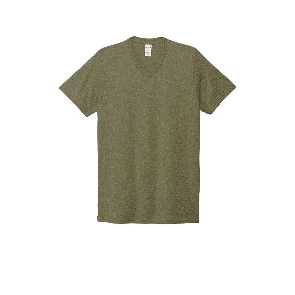 Everyone can enjoy a custom Allmade Unisex Olive You Green Tri-Blend V-Neck Tee. This simple tee is a must have when it comes to logoed apparel. This extremely soft sustainable tee that is made of 4.2 ounce 50% Repreve polyester from recycled plastic bottles, organic US grown cotton and Tencel Modal singles for an eco-friendly look that will stand the test of time. Add a custom screen print in your design to use as employee apparel that is part of a sustainable clothing line or simply to show how green you can be with recycled apparel.