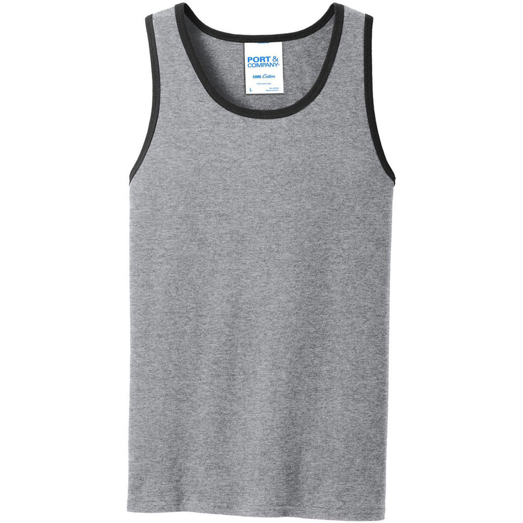 Port & Company Men's Athletic Heather/Jet Black Core Cotton Tank Top