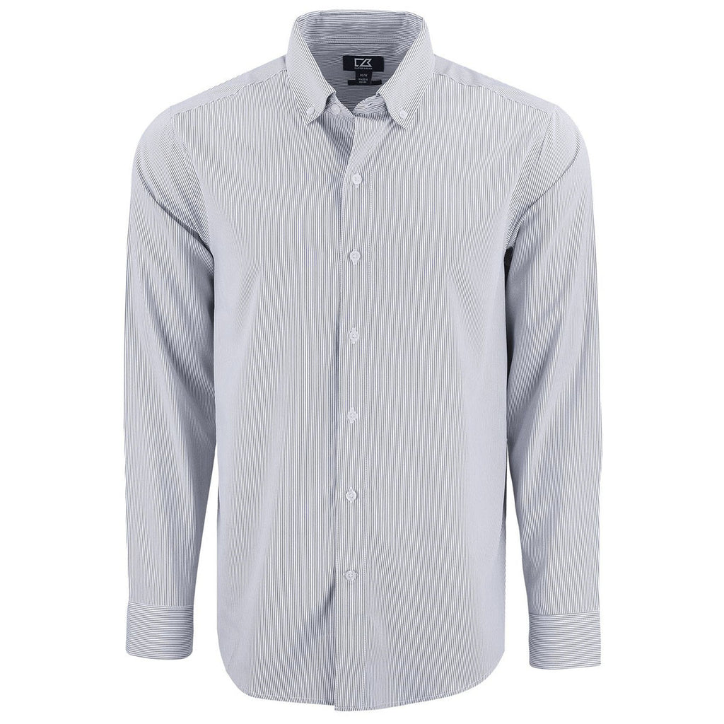 Cutter & Buck Men's Elemental Grey/White Skyline Epic Confidence Recycled Pinstripe Long Sleeve Dress Shirt
