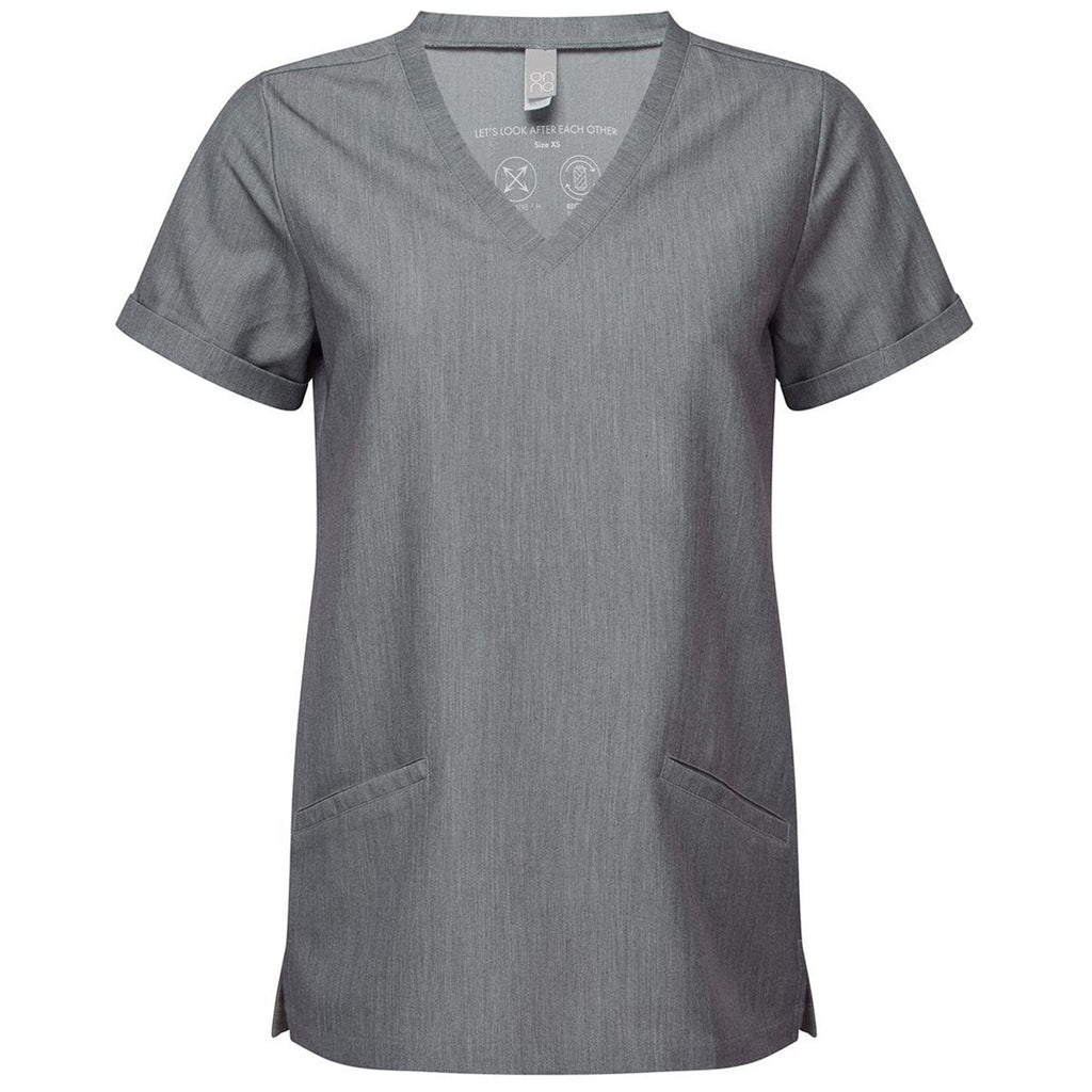 Onna Women's Dynamo Grey Invisible V-Neck Stretch Scrub Top