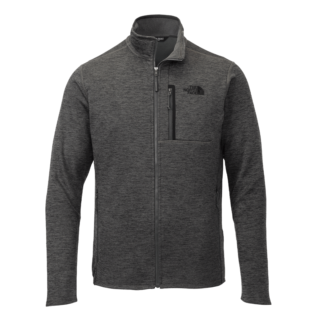 The sleek, custom look created by the custom The North Face Men's Dark Grey Heather Skyline Full-Zip Fleece Jacket is unmatched. Add your corporate embroidery to the polyester and elastane blend to create a stellar employee gift or end-of-year gifts for loyal customers. The stretch, peached-faced custom fleece has a brushed interior for added comfort and a comfortable fit whether hitting a hiking trail or pounding the pavement selling goods. The midweight fabric helps regulate body temperature while attending team events or corporate outings. Choose a corporate embroidery that best fits your needs and place an order right away to be prepared for your next scheduled happening.