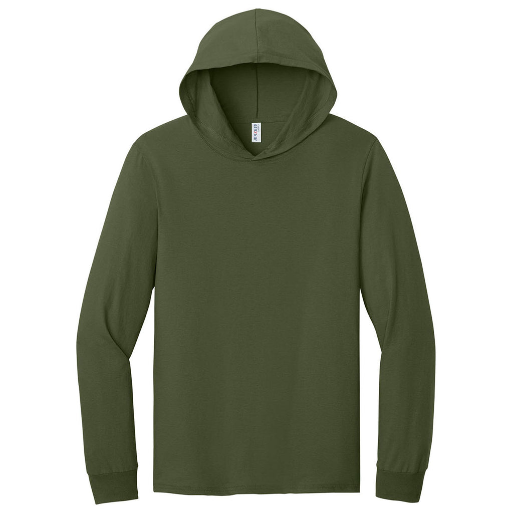 Jerzees Classics Unisex Military Green Cotton Long Sleeve Hooded T-Shirt with a custom logo delivers a laid-back yet durable design. Soft cotton fabric provides ultimate comfort, making it perfect for casual outings or layering in colder weather. The hood adds extra warmth and versatility, while the long-sleeve style is ideal for a relaxed yet stylish look that never goes out of fashion.Highlights
