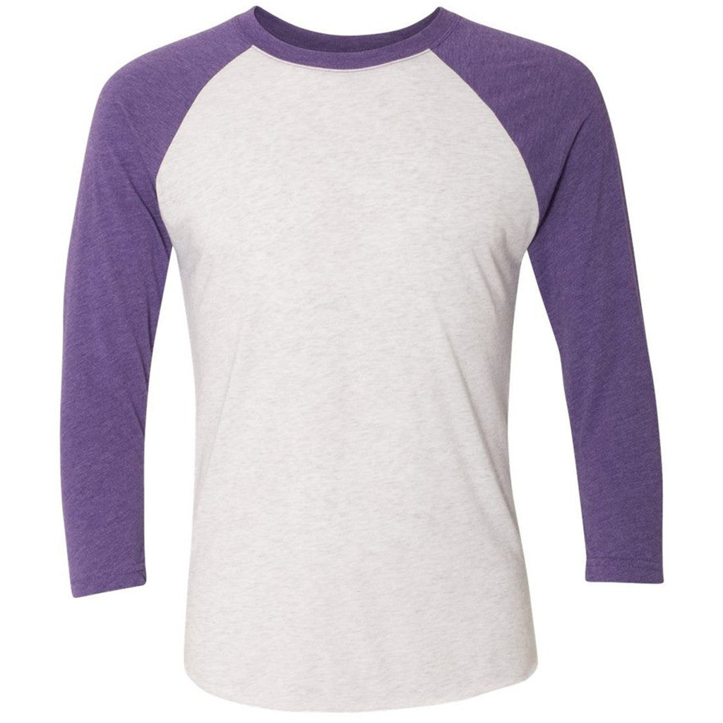 you've had enough of regular tees! No more short sleeves, no more long sleeves! The problem is, you're not sure what else is out there for your own unique, customized branding that might possibly separate you from the pack. Well, it's time to remember your fractions, because the Next Level Unisex Purple Rush/Heather White Triblend 3/4-Sleeve Raglan Tee offers the effective layering and unorthodox look you've been after for so long. Simply add your own customized logo to this tee and you'll find out how easy it is to offer a unique take on corporate swag. After all, it's amazing what sleeves can achieve.