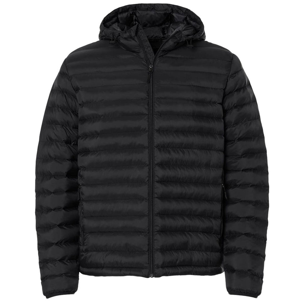 Weatherproof Men's Black Lightweight Poly-Filled Hooded Puffer Jacket supports corporate embroidery for team outfitting while delivering warmth and mobility. Its insulated poly fill and hooded design keep cold at bay without restricting movement. Ideal for outdoor activities or daily wear, this jacket offers durability, lightweight comfort, and a sleek look that ensures both practicality and style throughout the season.