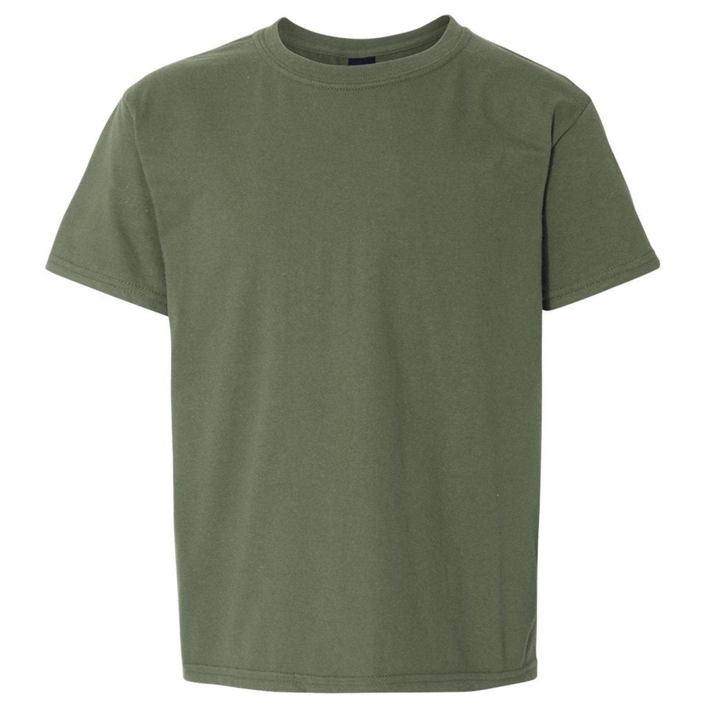 The Gildan Youth Military Green Light Cotton T-Shirt is a soft, comfortable option ideal for custom or corporate printing. Made from breathable cotton, it works well for school events, sports teams, and youth programs. Its smooth surface enhances print clarity, and the affordable price point makes bulk purchases easy. A dependable everyday tee for active kids.Highlights