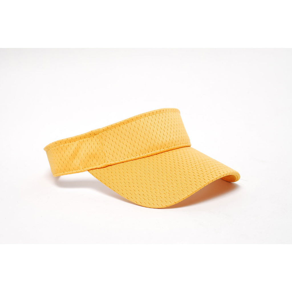 Add a custom logo on the large imprint area located at the front of the Pacific Headwear Gold Adjustable Coolport Visor to create an effective marketing tool. Hand the stylish visor out at trade shows to generate buzz for your company. Logoed corporate fashion accessories help you send a powerful brand message at business conferences. The ultra low two-inch crown prevents the sun from blocking your vision during a company softball game or annual corporate golf tournament. Proprietary Coolport mesh performance fabric circulates air to ensure you remain feeling fresh all day long. The fabric resists rips and tears to give you years of high performance use.Highlights
