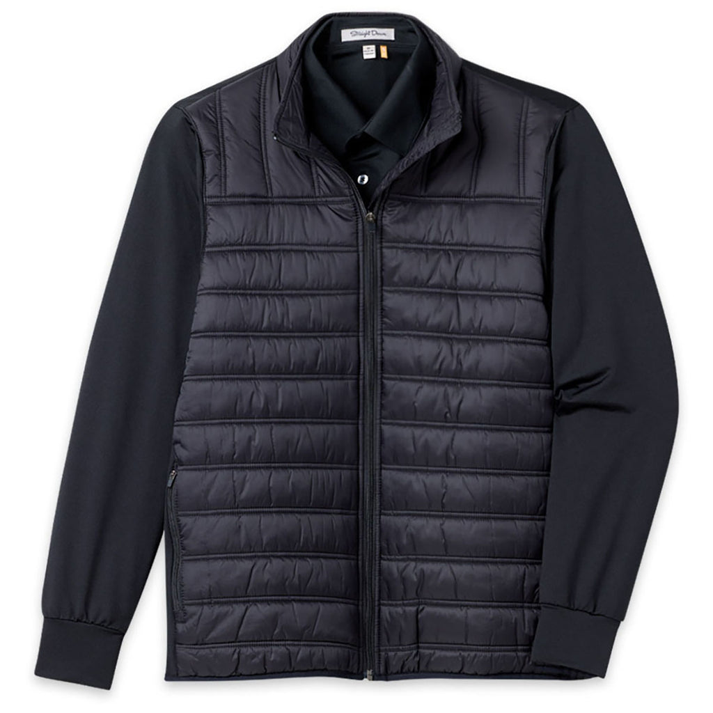 Corporate buyers will appreciate the Straight Down Men's Black Patton Jacket for its sleek design and functional warmth. Quilted panels add lightweight insulation, while stretch side panels improve movement and comfort. With secure zip pockets and a modern fit, it's an excellent outerwear option for branded programs or executive gifts.