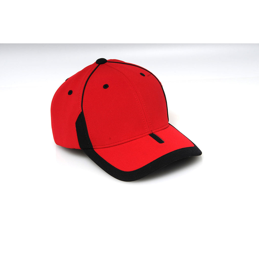 The slightly curved visor of the logoed Pacific Headwear Red/Black Universal M2 Performance Sideline Cap does a great job of blocking out the sun. Between the visor and sunglasses, you have the tools to hone in on fly balls during corporate athletic events. Wear the cap at company retreats and on the road for business. Make sure to add a custom logo on the large imprint that promotes your company to everyone you pass in crowded airports. M2 performance fabric feels soft on the head, as well as offers long lasting durability. The structured design of the cap creates a refined look.Highlights