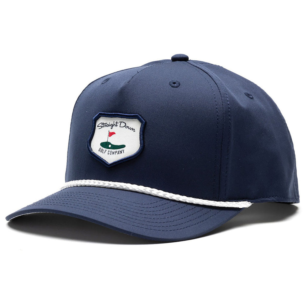 Create a custom look with the Straight Down New Indigo Retro Rope Hat Curved Bill, a stylish twist on a timeless cap. Its curved visor and iconic rope accent balance vintage appeal with everyday function. The adjustable snapback ensures a universal fit, making it ideal for branded merchandise or casual events.Highlights