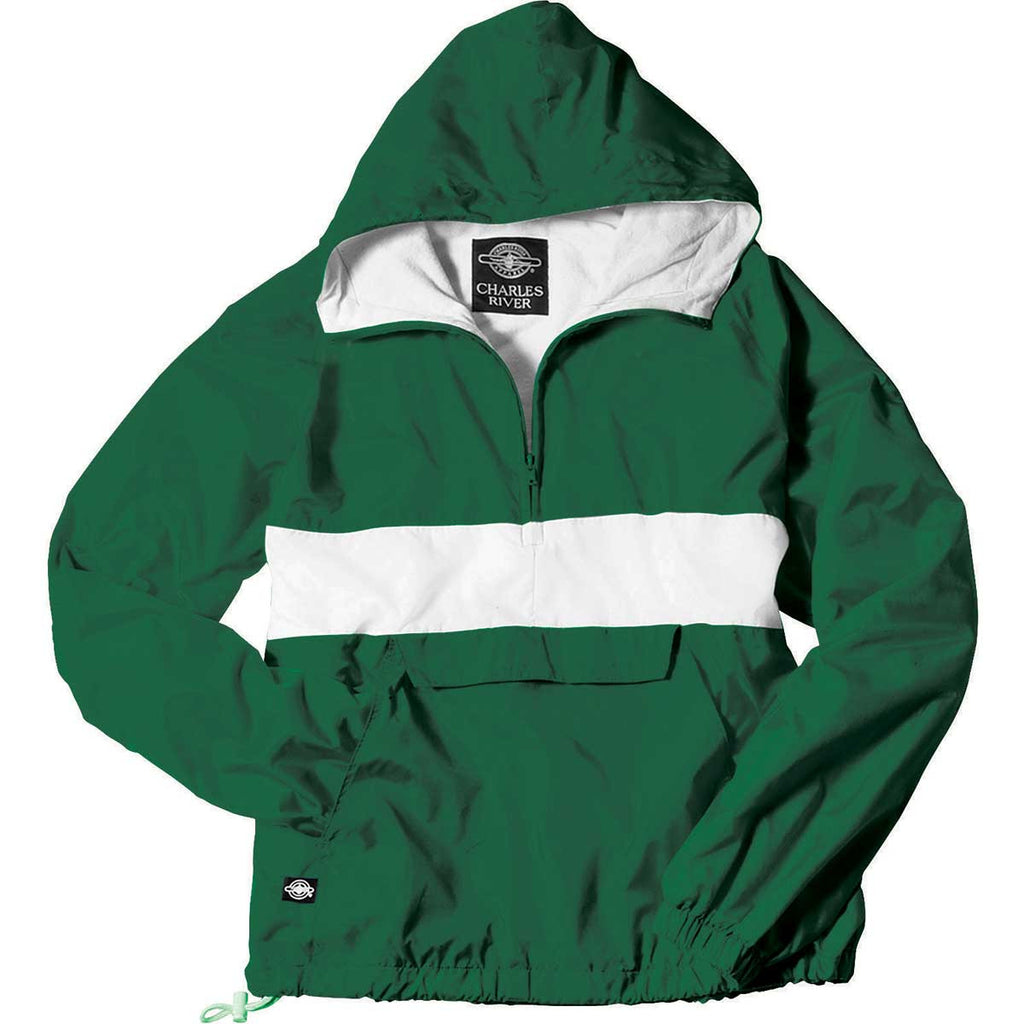 If you've never seen a pullover inspired by rugby styling before, then you're going to love the Charles River Unisex Forest/White Classic Charles River Striped Pullover. And sure, while it has all of the fashion and style you'd hope for from a pullover, it doesn't hurt that it's also got all of the hardware you need, too. What do we mean? We mean the fact that it packs into its own pouch, not to mention the wind and water-resistant River Tec fabric that keeps it all locked out. With your custom logo added to this pullover, there will be no end to the amount of brand promotion you can do-people will love it that much.Highlights