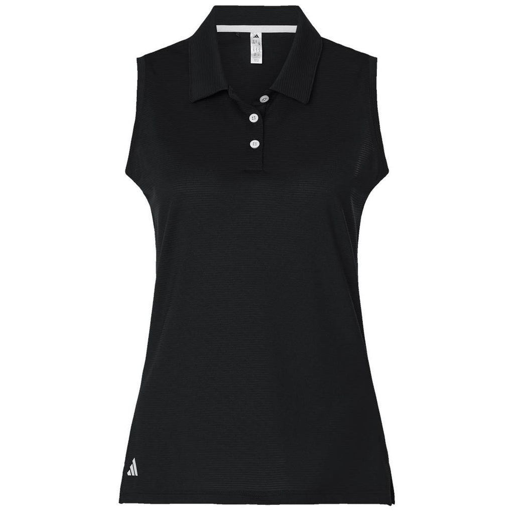 The Adidas Women's Black Ottoman Sleeveless Polo supports embroidery and offers a textured fabric that creates a refined, lightweight feel. Its sleeveless cut ensures easy movement in warm weather, making it ideal for golf, travel, or casual workdays. Buyers appreciate its breathable comfort and flattering silhouette, while organizations value its clean, versatile appearance.This product can only ship within the United States.