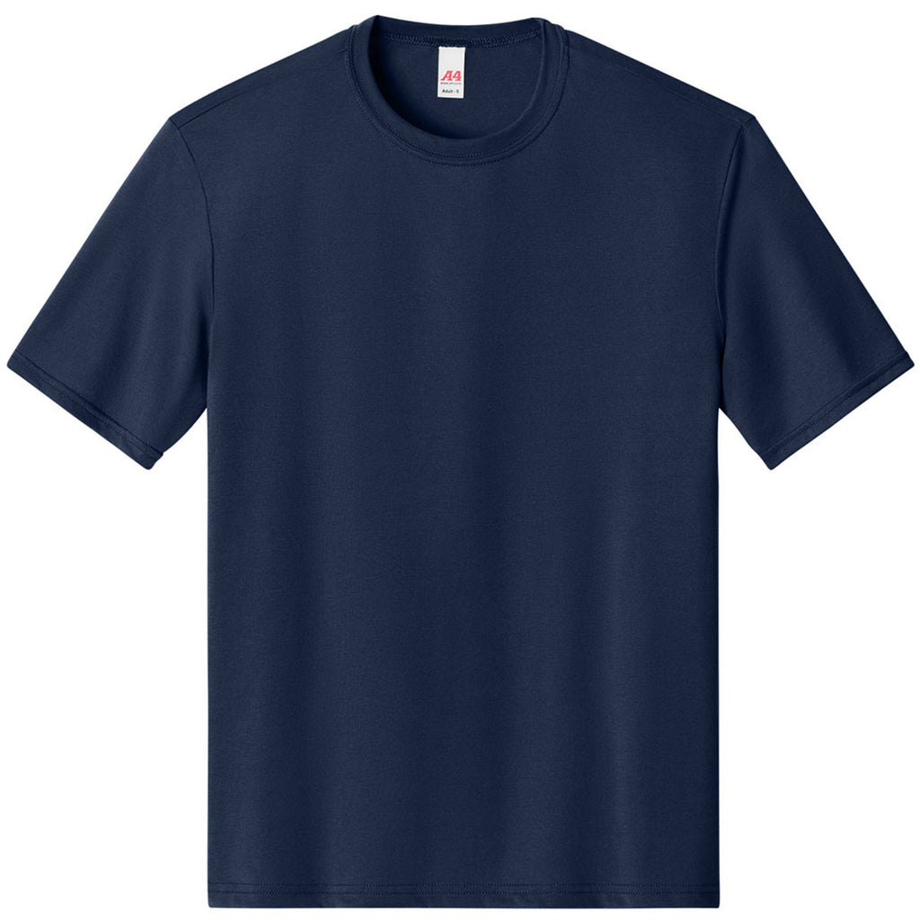 Soft to the touch and designed for comfort, the A4 Men's Navy Softek Short Sleeve Tee balances casual wear with performance features. Lightweight and breathable, it's an excellent option for customization. Whether outfitting a team or creating branded merchandise, this tee highlights comfort and function in one versatile package.