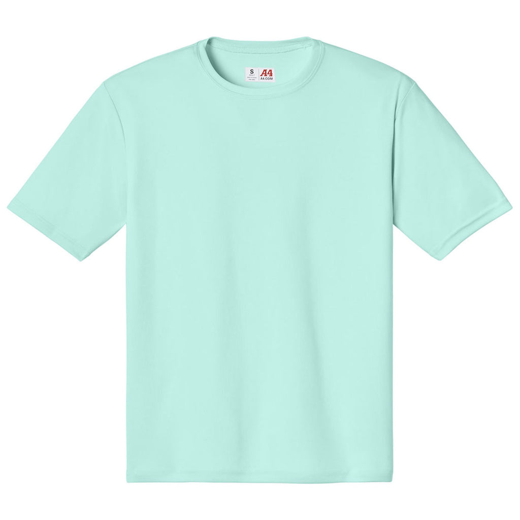 Keep cool with the A4 Men's Pastel Mint Cooling Performance Short Sleeve Tee. Built with moisture-wicking fabric, this tee is designed for workouts, sports, or active jobs. Customize it with your logo to create branded apparel that's functional and comfortable. Its lightweight design makes it a reliable choice for corporate promotions or team uniforms.Highlights
