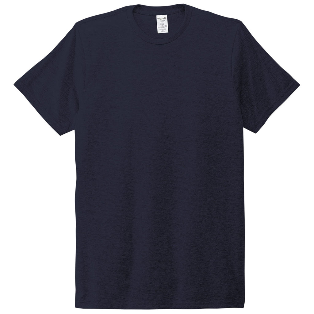 Screen print will pop on the Allmade Unisex Night Sky Navy Tri-Blend Tee with your choice of design and location. This sustainable clothing is a must have for most wardrobes because it is both eco-friendly and comfortable. Easy to wear alone or layer as needed, this recycled apparel is made from sustainable materials that are the equivalent of up to six recycled plastic water bottles. With a rib knit collar, side seams, and tear away label, this tee can go from a morning run to a day spent with families and home again with ease. Made for durability, this tee will make your custom logo stand out whether used as a custom gift or employee apparel.