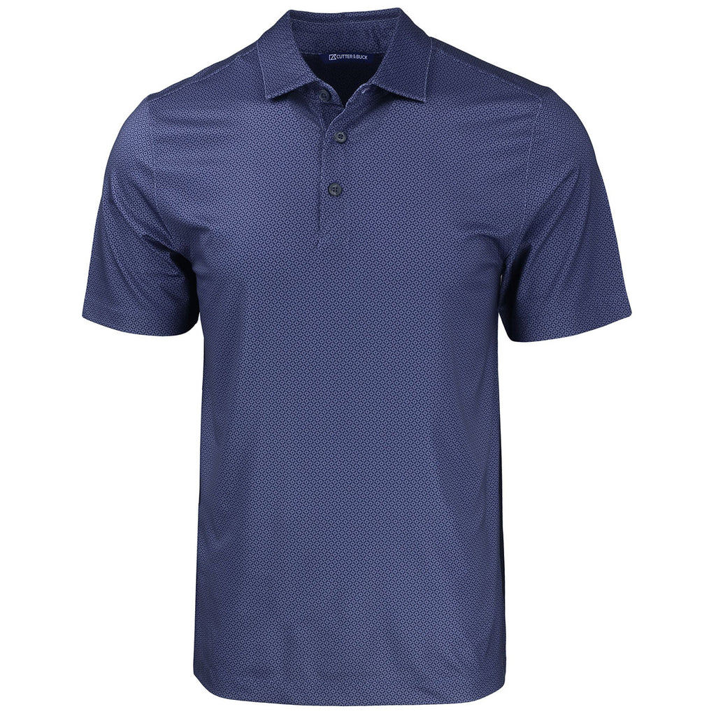 Cutter & Buck Men's Navy Blue Pike Eco Tonal Geo Print Stretch Recycled Tall Polo