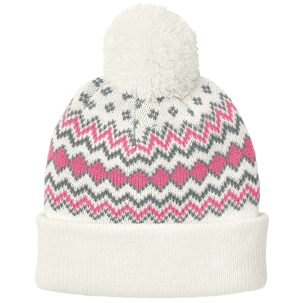 Custom embroidery on the Port Authority Marshmallow/Awareness Pink/Gusty Grey Alpine Pom Beanie creates a playful yet functional corporate accessory. Its cozy knit fabric and colorful pom add warmth and personality to cold-weather outfits. Whether used as employee gear or promotional giveaways, this beanie provides a fun way to showcase your logo while keeping recipients comfortable in style.Highlights