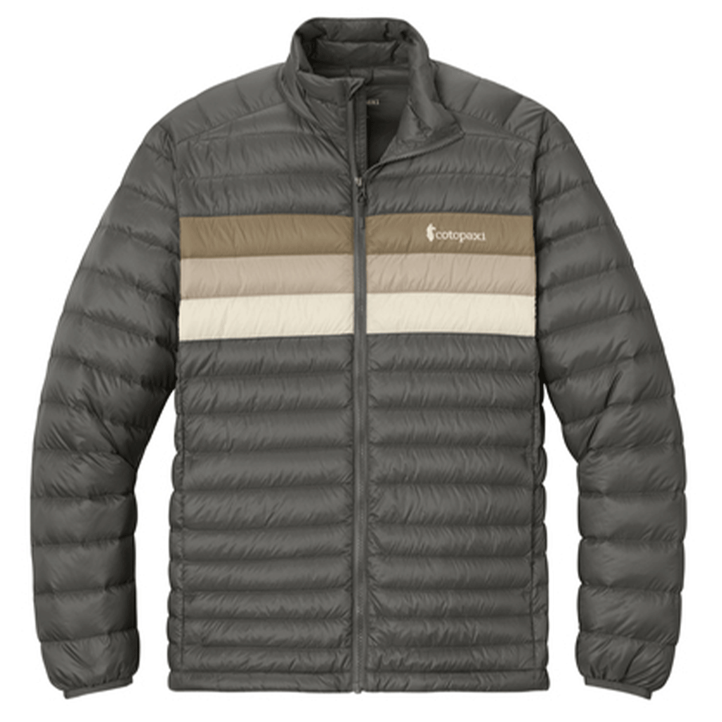 The Cotopaxi Men's Cinder/Desert Fuego Down Jacket offers superior warmth and lightweight performance for outdoor adventures or everyday wear. Crafted with sustainable down and a durable, water-resistant shell, it provides comfort and protection in cooler conditions. Ideal for outdoor fun or custom outerwear, this jacket blends functional style, ethical materials, and all-day versatility.This product can only ship within the United States and Canada.