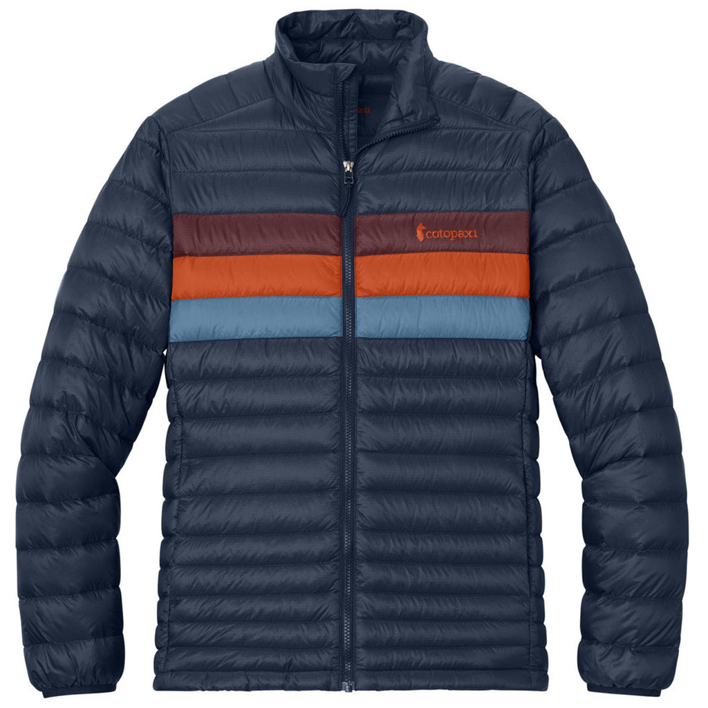 The Cotopaxi Men's Maritime/Mulberry Fuego Down Jacket offers superior warmth and lightweight performance for outdoor adventures or everyday wear. Crafted with sustainable down and a durable, water-resistant shell, it provides comfort and protection in cooler conditions. Ideal for outdoor fun or custom outerwear, this jacket blends functional style, ethical materials, and all-day versatility.This product can only ship within the United States and Canada.