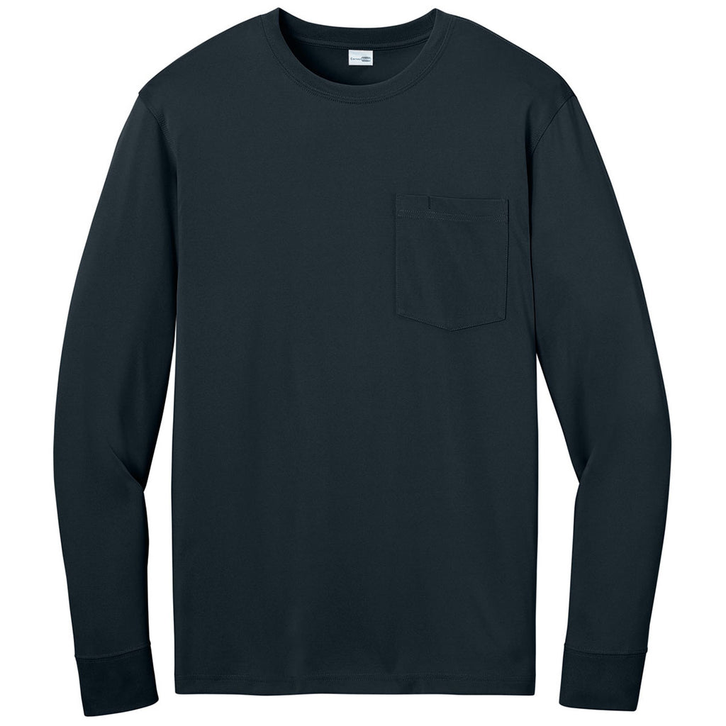 Custom logos enhance the CornerStone Men's Navy Workwear Pro Long Sleeve Pocket Tee, a reliable workwear staple. Durable fabric and a convenient pocket make it practical for long days on the job. As corporate apparel, it offers both function and professionalism, giving employees a comfortable uniform piece that reflects your brand.Highlights