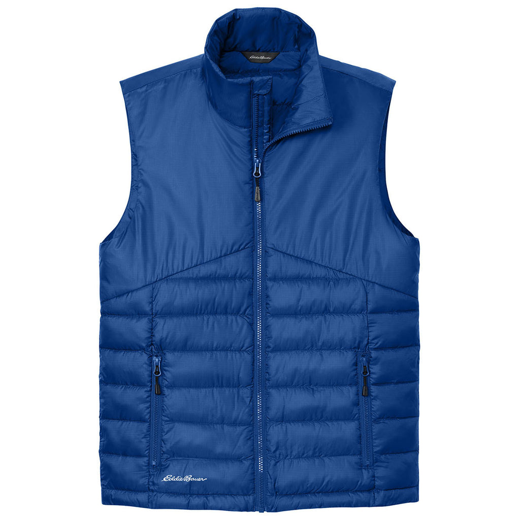 Add your custom logo to the Eddie Bauer Men's Cobalt Blue Quilted Vest for a performance layer that is ready for all your outdoor adventures. Whether mountain climbing, skiing, or just enjoying cooler weather, this vest can be worn as an outer or middle layer with ease. Water repellant, quilted, and not bulky, this is a must-have. Place an order today.This product can only ship within the United States, Puerto Rico, Canada, and Mexico.