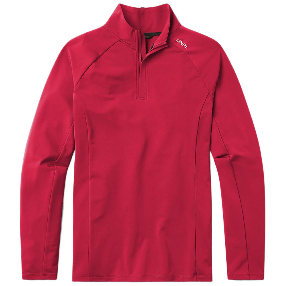 The UNRL Men's Carmine Red Highlands Quarter Zips provides light weight SPF protection in a novel performance fabric. A refined layering piece that easily transitions from the office to the golf course. Contoured at the shoulders and throughout the body, this quarter zip allows full range of motion at the tee box. The only thing missing is a custom logo to outfit your entire team.