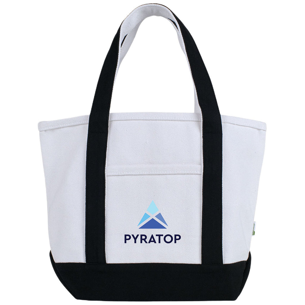 The Logomark Black Roan Mini 24 oz. Recycled Canvas Tote is a custom favorite for boutiques, welcome kits, or eco-friendly events. Made from recycled cotton, it's compact, durable, and reusable. Ideal for carrying essentials, packaging gifts, or adding a sustainable twist to your logoed merchandise.