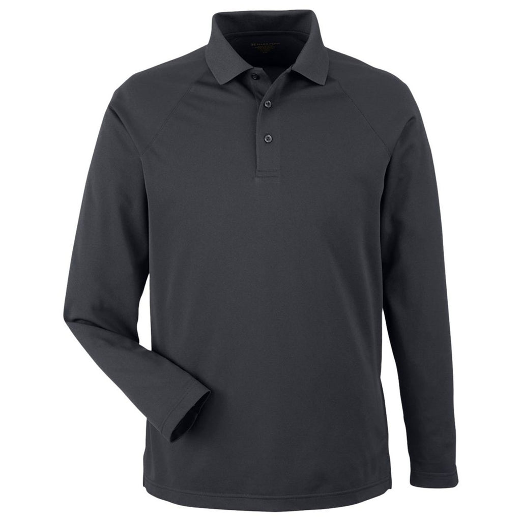 Harriton Men's Dark Charcoal Charge Snag and Soil Protect Long Sleeve Polo