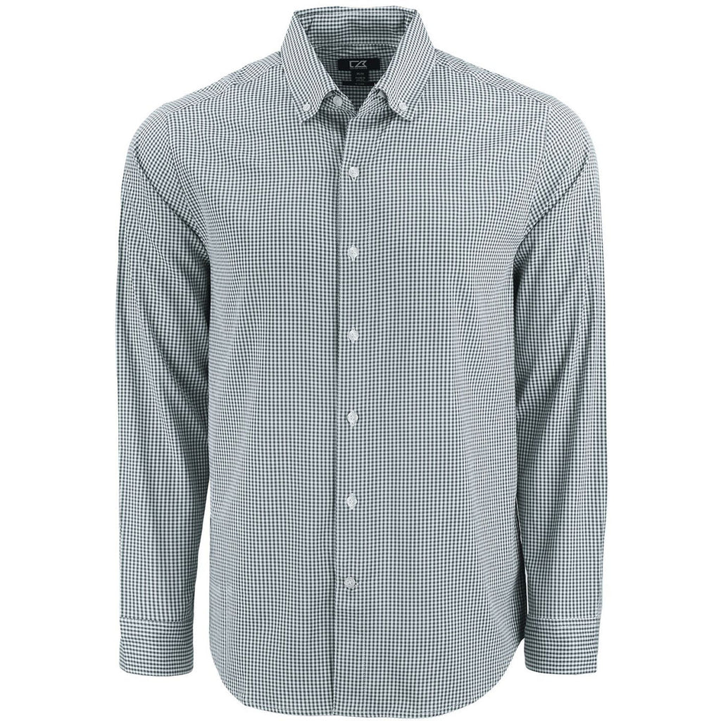 Cutter & Buck Men's Hunter/White Skyline Epic Confidence Recycled Gingham Long Sleeve Dress Shirt