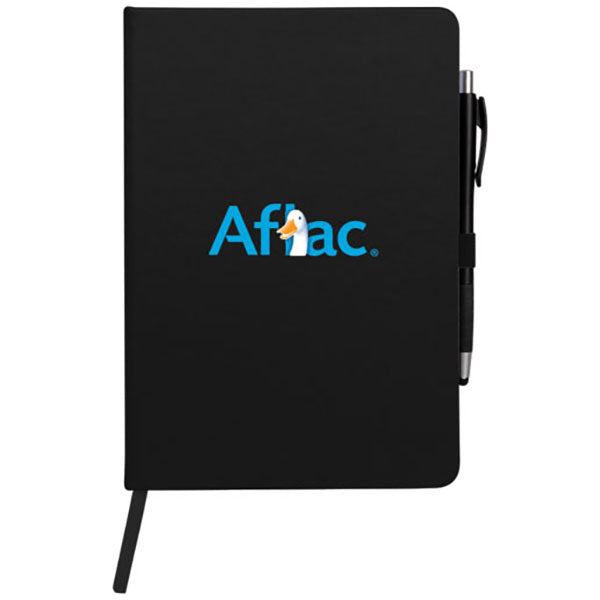 Corporate notes get a custom upgrade with the Snugz USA Black Neptune Notebook with Pen. This stylish set includes a spiral-bound notebook and matching soft-touch pen, perfect for meetings, conferences, or employee welcome kits. The sleek design and generous imprint space make it a practical and polished branding choice for the home, office, or anywhere you may go.The minimum order for this product is 50 pieces.