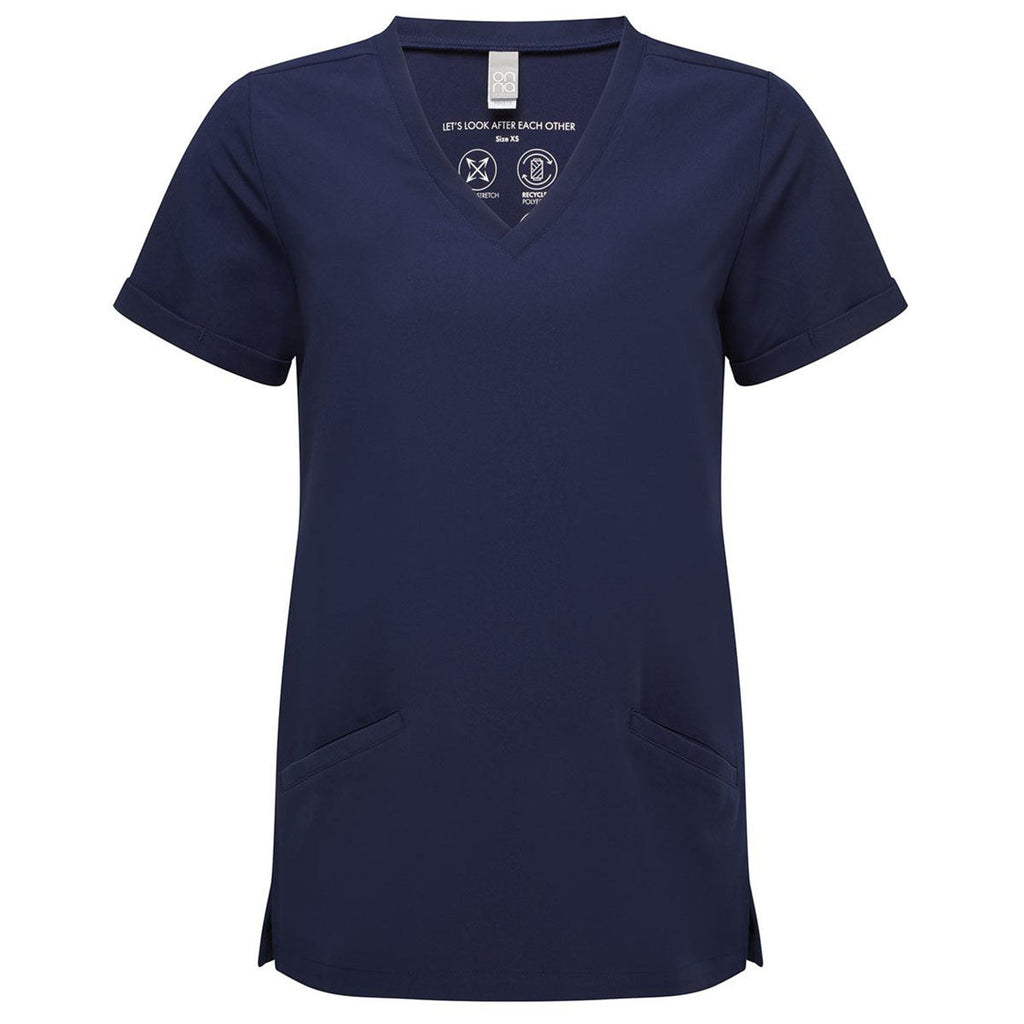 The Onna Women's Navy Invisible V-Neck Stretch Scrub Top offers a polished fit designed for corporate embroidery that enhances professional presentation. Its smooth stretch fabric, reinforced seams, and easy-care finish support demanding schedules. Wearers appreciate its flattering neckline, breathable comfort, and reliable performance in fast-paced healthcare environments or when coordinated with team uniforms.Highlights