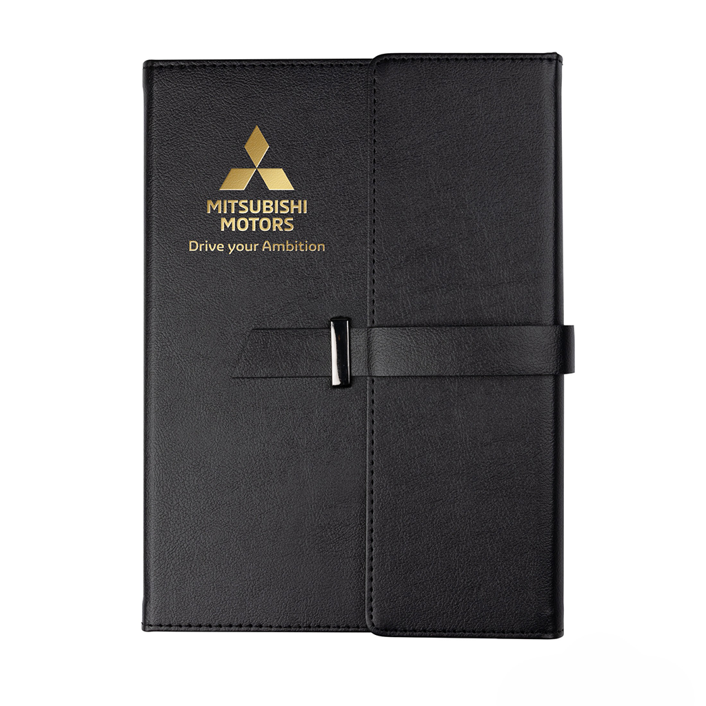The Swiss Force Black Attila Hardcover Journal w/Belt features a sleek leatherette cover with a secure wraparound closure for a modern, functional design. Inside, it offers a refillable journal with card slots and a pen holder, making it a practical choice for meetings, travel, and everyday note-taking.The minimum order for this product is 50 pieces.
