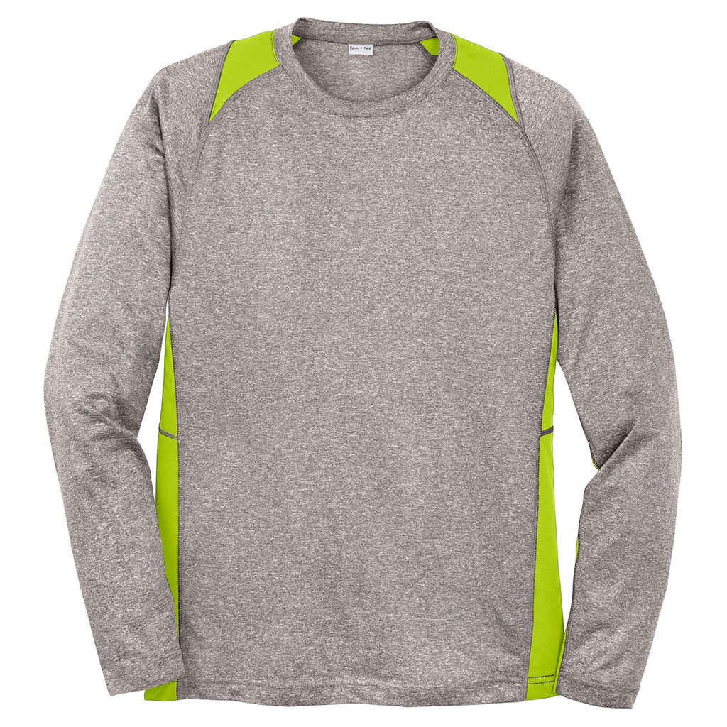 Sport-Tek Men's Vintage Heather/ Lime Shock Long Sleeve Heather Colorblock Contender Tee