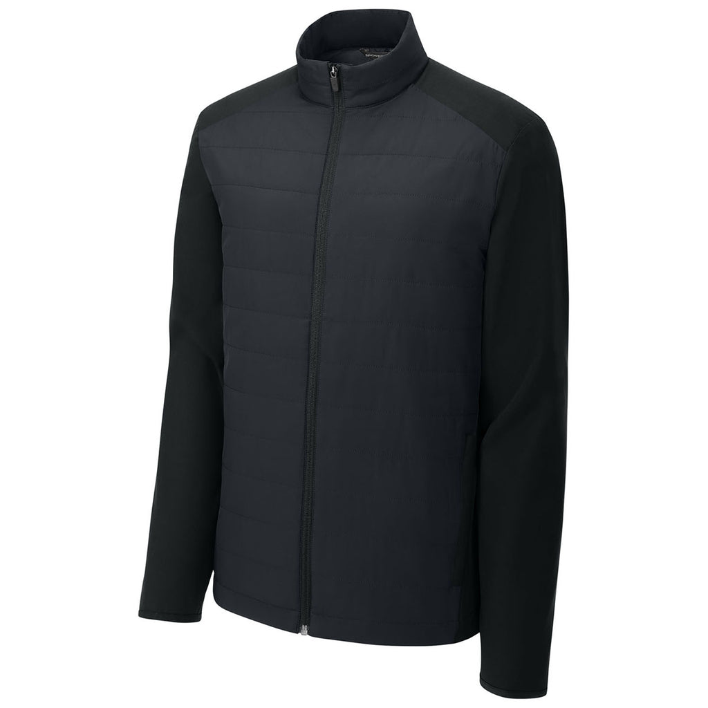 Custom branding enhances the Sport-Tek Men's Black Teknical Hybrid Jacket, designed for warmth and mobility. With insulated panels and stretch side fabric, it's built for comfort without bulk. As a corporate apparel piece, it delivers function and professionalism, making it a versatile option for employees, team members, or branded gifts.
