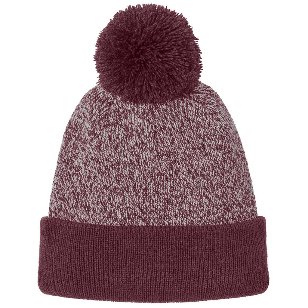 Sport-Tek Maroon/Silver Halftime Heather Pom Beanie