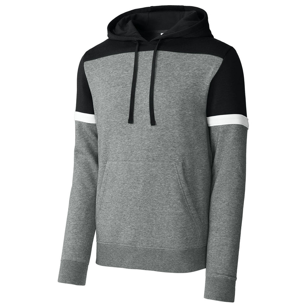 The Sport-Tek Men's Black/Vintage Heather Drive Fleece Colorblock Hoodie with a corporate design is a dynamic blend of comfort and style. Featuring a color-blocked design, this hoodie is made from soft, durable fleece that ensures warmth and breathability. Ideal for athletic and casual wear, it provides excellent freedom of movement while maintaining a modern, athletic aesthetic.Highlights