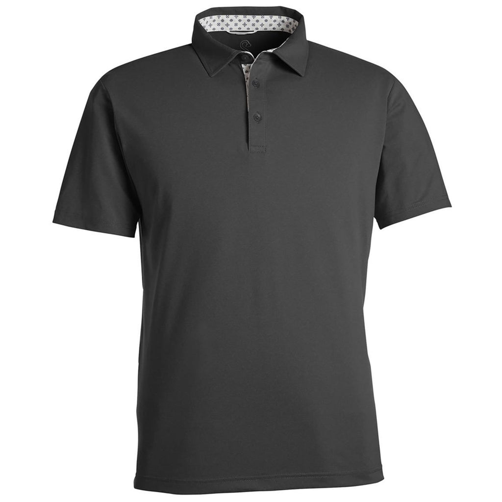 Smart, breathable, and designed for movement, the Swannies Men's Black Heather James H Polo combines moisture-wicking performance with clean, modern lines. A subtle pattern and comfortable stretch fabric make it ideal for office and active settings. Add your custom logo for corporate golf outings, upscale teamwear, or everyday professional branding.Highlights